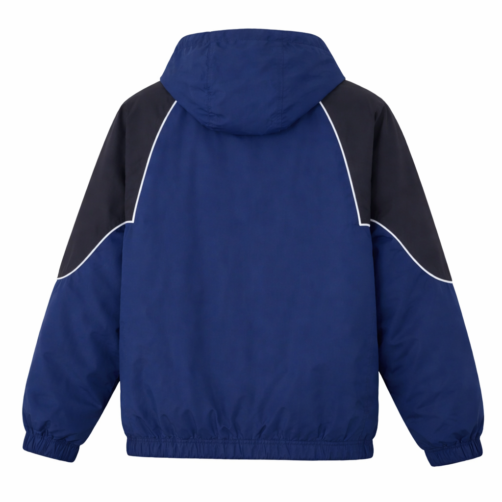 Establishing a new frontier of elevated streetwear and minimalist luxury, the Marty Supreme Kendall Jenner Hooded Jacket defines a uniform for the modern avant garde. Constructed from a high performance polyester, this piece offers a sleek, water resistant foundation with a subtle technical sheen, embodying a fusion of athletic readiness and high fashion sensibility. The silhouette is centered around a streamlined, adjustable hooded style collar, providing versatile protection and an instantly recognizable, contemporary profile that integrates seamlessly into a full length zipper style front. This closure allows for quick transformation from a fully sealed garment to an open, layered piece. Elastic cuffs at the sleeves ensure a secure, comfortable fit that moves with precision, whether in motion or in repose. Inside, a featherlight viscose lining adds a crucial layer of softness and climate control against the skin. The dynamic color blocking of classic black and a vibrant, electric blue creates a bold, graphic statement, perfectly capturing the cutting edge and influential aesthetic of the Kendall Jenner Marty Supreme Jacket.