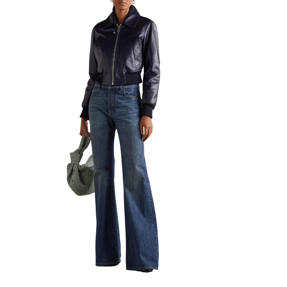The midnight blue color is stunning and adds a unique twist to the classic leather jacket.